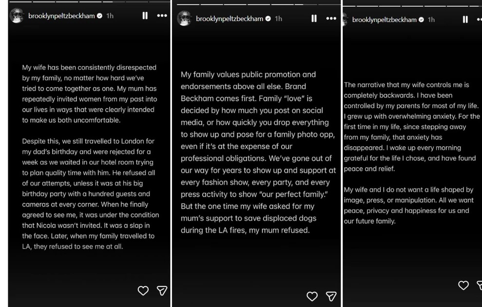 Ο Μπρούκλιν Πελτζ Μπέκαμ διατύπωσε κατηγορηματικά ότι δεν υπάρχει καμία προοπτική συμφιλίωσης με τους δικούς του, αποκαλύπτοντας μέσω μιας εκ βαθέων ανάρτησης στο Instagram την ύπαρξη σοβαρής οικογενειακής ρήξης για πρώτη φορά δημοσίως.