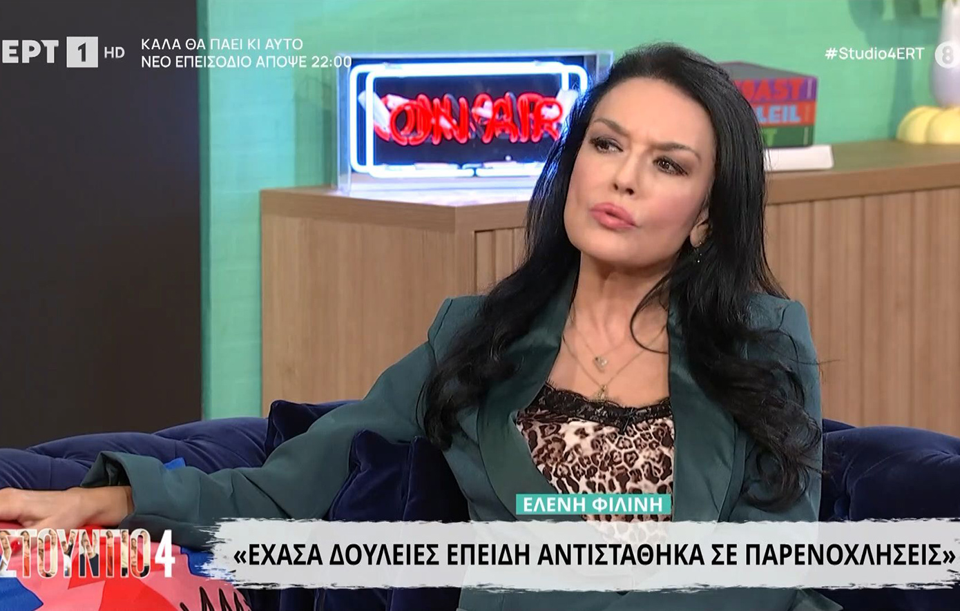 «Μου φόρεσαν την ταμπέλα της πολύ ωραίας γυναίκας από μόνοι τους», ανέφερε η Ελένη Φιλίνη, εξηγώντας ότι τη δεκαετία του ’80 έπρεπε να αποδείξει πως, πέρα από την εμφάνιση, είχε και ταλέντο και μυαλό. «Το να λένε μόνο “να ένα ωραίο κορίτσι” θα ήταν αρκετό αν ασχολιόμουν μόνο με το μόντελινγκ. Εγώ όμως το έκανα απλώς για το χαρτζιλίκι», τόνισε, προσθέτοντας πως τότε την ενοχλούσε να της δίνουν μόνο “ρόλους της όμορφης”. «Δεν το χάρηκα, αισθανόμουν άσχημα. Τώρα που το σκέφτομαι, λέω: τι χαζή που ήμουν», παραδέχθηκε.