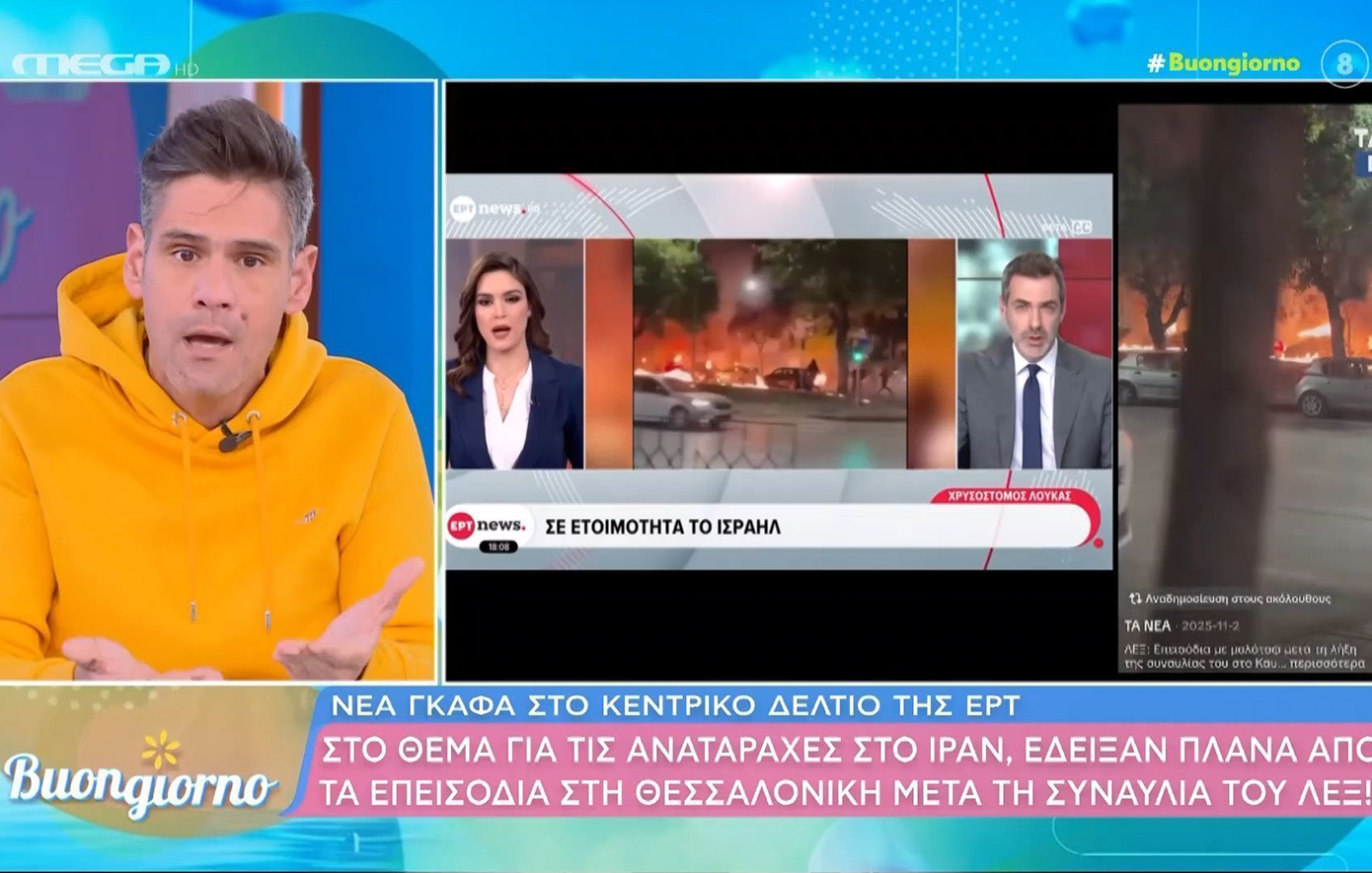 Στο δελτίο ειδήσεων του ΕΡΤ News, το απόγευμα της Κυριακής 11 Ιανουαρίου, σημειώθηκε ένα απίστευτο λάθος. Στο ρεπορτάζ για τις αναταραχές στο Ιράν, προβλήθηκαν πλάνα από επεισόδια που είχαν λάβει χώρα στη Θεσσαλονίκη μετά από συναυλία του ΛΕΞ.