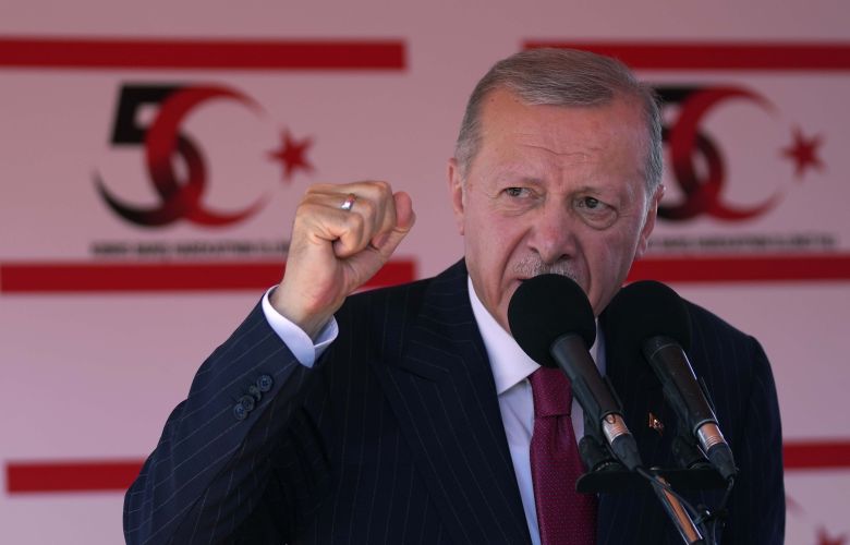 Ακριβέστερα, ο Τούρκος πρόεδρος τόνισε μιλώντας για το ευρύτερο πλαίσιο των εξελίξεων στην περιοχή: «Είτε πρόκειται για την Ανατολική Μεσόγειο, είτε για το Αιγαίο, είτε οπουδήποτε αλλού εμείς δεν παραβιάζουμε δικαιώματα (άλλων), αλλά ούτε και επιτρέπουμε να παραβιαστούν τα δικαιώματά μας. Δεν θα επιτρέψουμε την καταπάτηση και την παραβίαση των δικαιωμάτων των Τουρκοκυπρίων. Συμφωνίες μπορούν να γίνουν, υπογραφές μπορούν να μπουν, διάφορα μηνύματα μπορούν να σταλούν με δοτές ερωτήσεις. Τίποτα από αυτά δεν μας δεσμεύει, δεν αλλάζει την πολιτική μας. Τα λόγια εκείνων που τα χέρια τους είναι βαμμένα με το αίμα 70.000 Παλαιστίνιων αδελφών μας δεν έχουν για εμάς περισσότερη αξία από τον κούφιο ήχο του ντενεκέ».